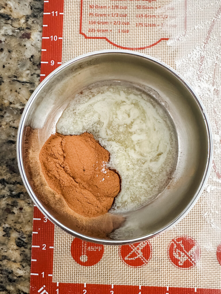 In a small bowl, combine your honey, cinnamon, butter, and salt. Stir your mixture until combined and smooth.