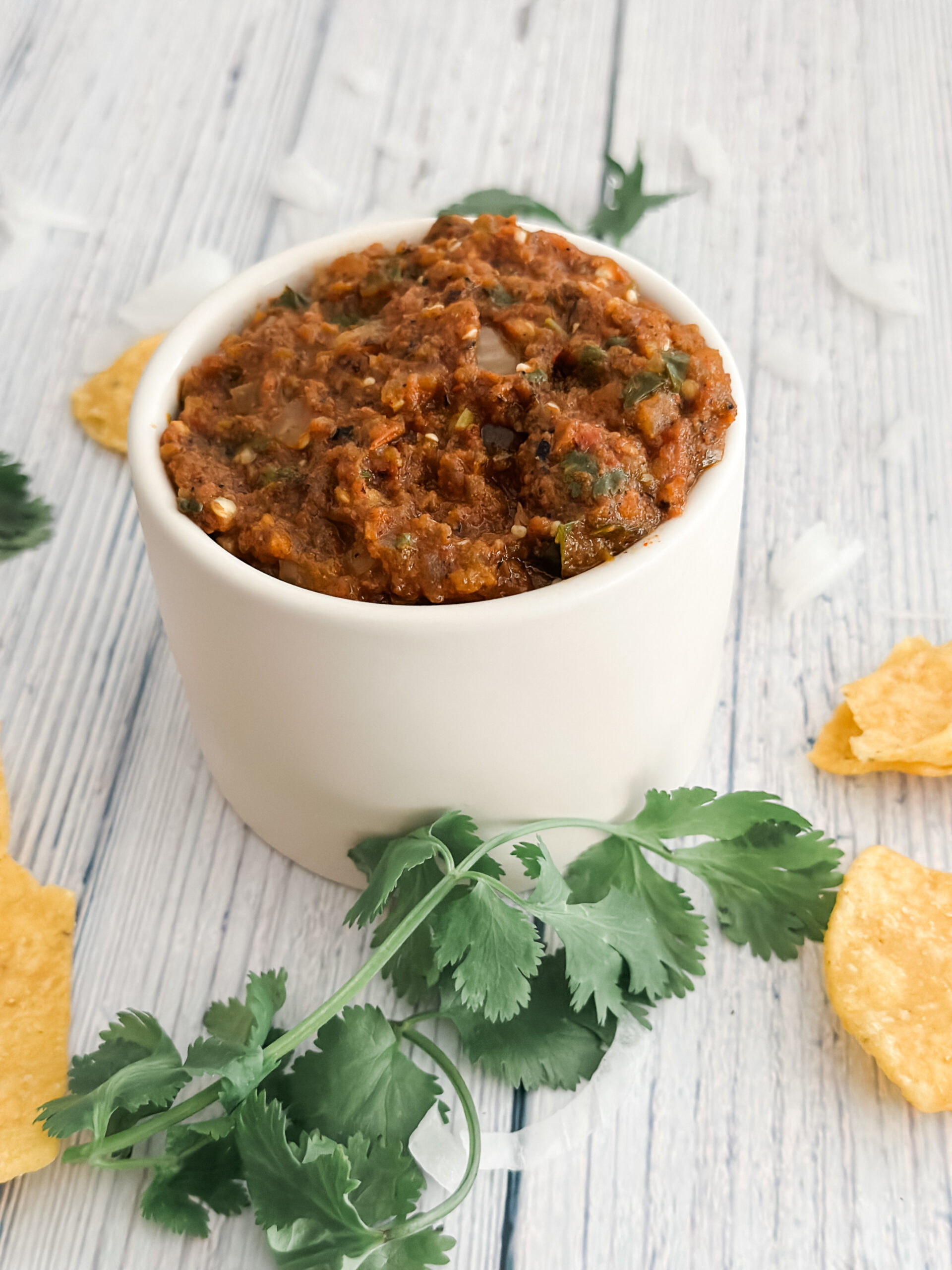Pasilla chili powder – ground Pasilla chilis bring a sweetness to the salsa that compliments the smokiness.
